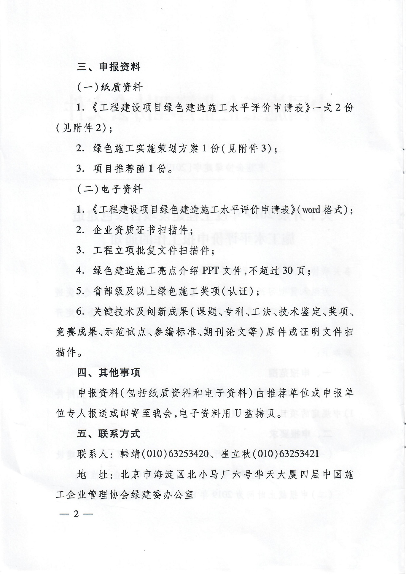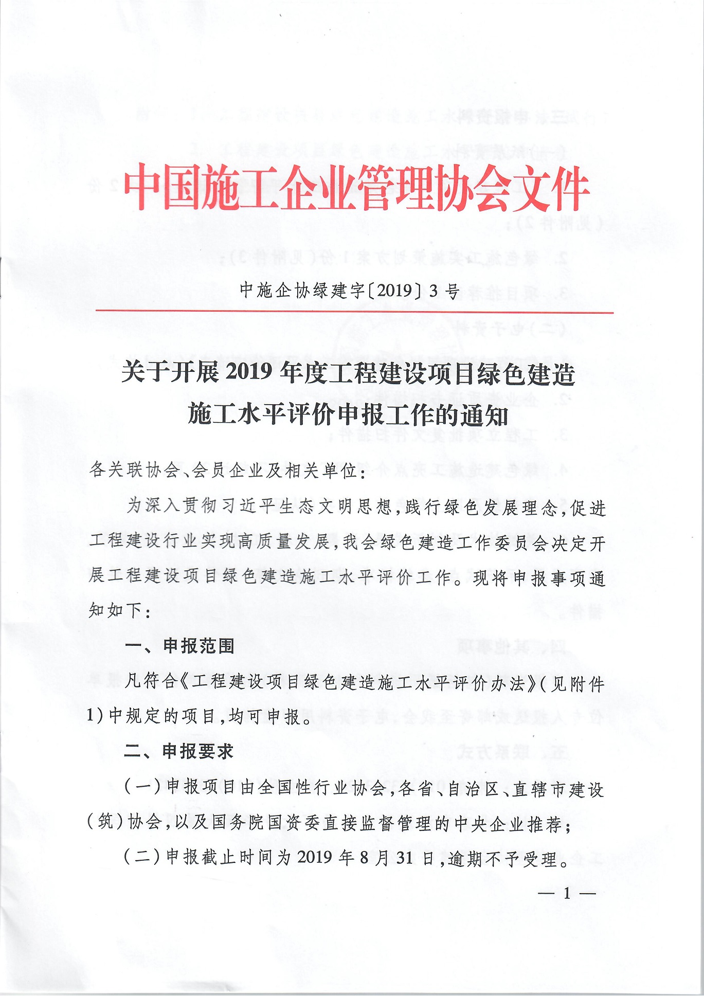 关于开展2019年度工程建设项目绿色建造施工水平评价申报工作的通知