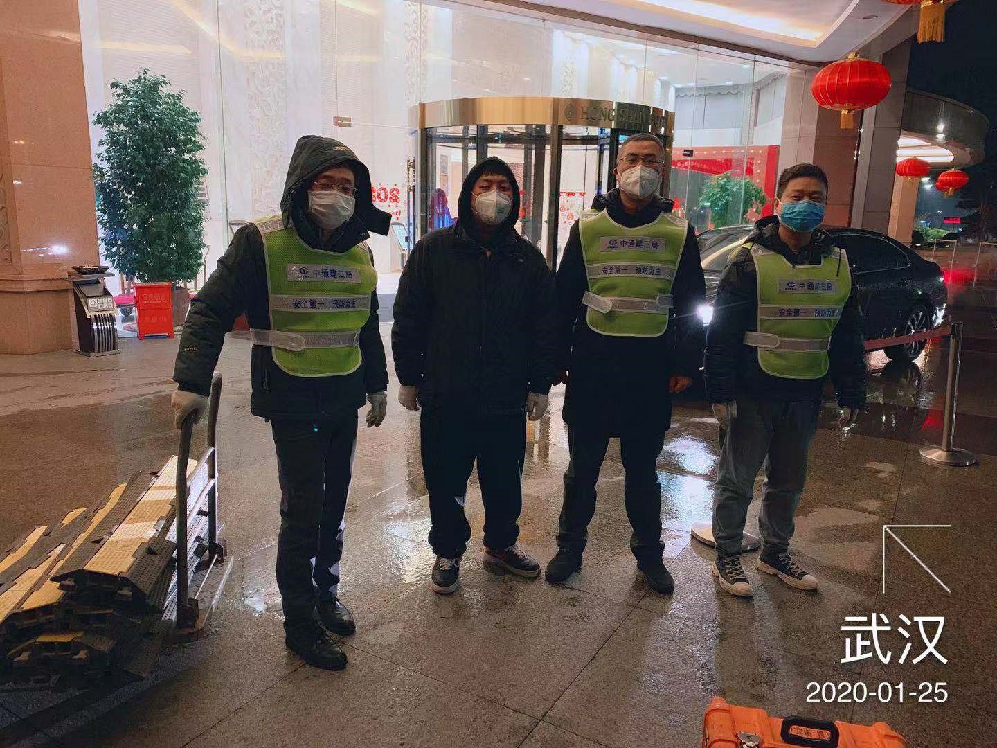 (三局第三分公司员工在武汉雷神山医院施工现场)