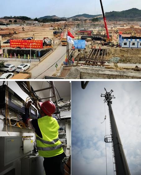 公司接到紧急任务,抢建“小汤山医院”——广州燕子岭医院,需要紧急完成该区域基站5G设备安装,用于远程医疗诊断。公司第一时间召开施工筹备会,即刻筹备各项施工资源。上午7点,技术人员紧急奔赴现场进行勘测;11点,施工队伍拿到施工图纸,立刻申领物资,一路驱车直达施工现场;进场后首先对队员进行体温检测,并做好防护措施。在现场进行班组安全交底后,队员们争分夺秒施工;由于该站点塔上替换天线及主设备数量较多,为尽早完成通信覆盖,2名施工人员从下午上塔直至完工开通,一直待在塔上,于2月3日凌晨3点高效完成任务。