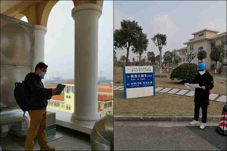 复杂的现场环境,不深入现场实地查勘,是无法完成精准设计的,如果说武汉是疫情最严峻的区域,那么上海公共卫生临床中心可谓是上海地区的前沿战场,为了打赢这场阻击战,上海邮电设计咨询研究院的设计者们发挥了“舍我其谁”主人翁精神。在突击队中黄天波、陈光源、虞坚强等同事迎难而上,不顾危险奔赴金山区上海市公共卫生临床中心,与电信同事一起,完成了现场勘察任务。
