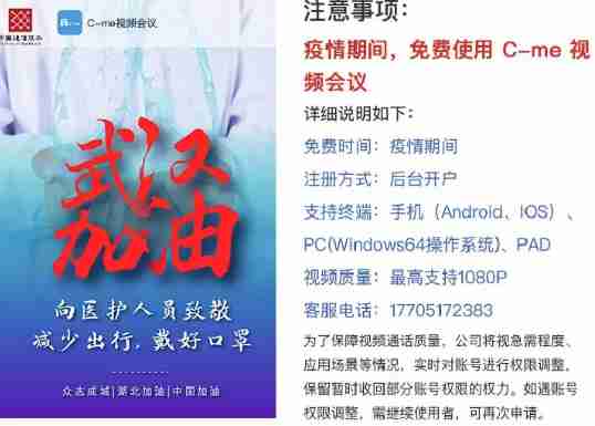 公司一直以来高度关注全国疫情发展,早在1月29日,公司便作出决定,面向社会免费开放自主研发产品C-ME视频会议系统,希望通过此举可以减少面对面交流,为抗击疫情尽一份力。