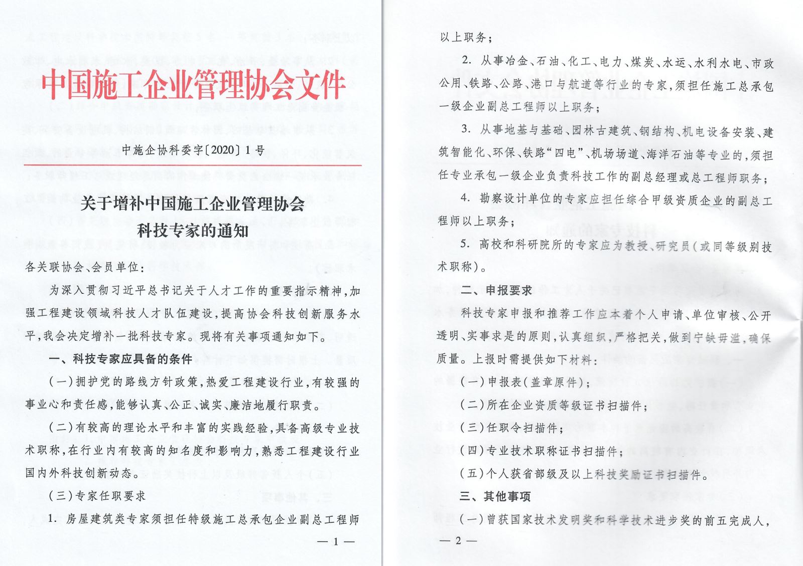 附件:1.中国施工企业管理协会科技专家申报表