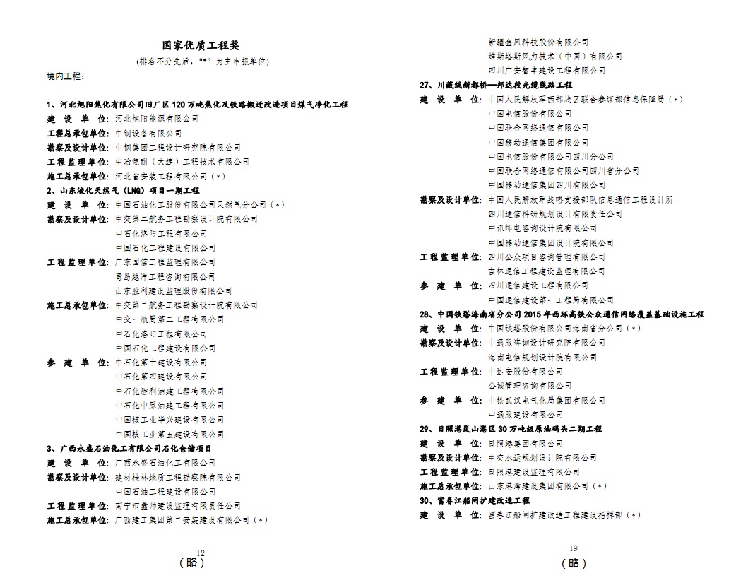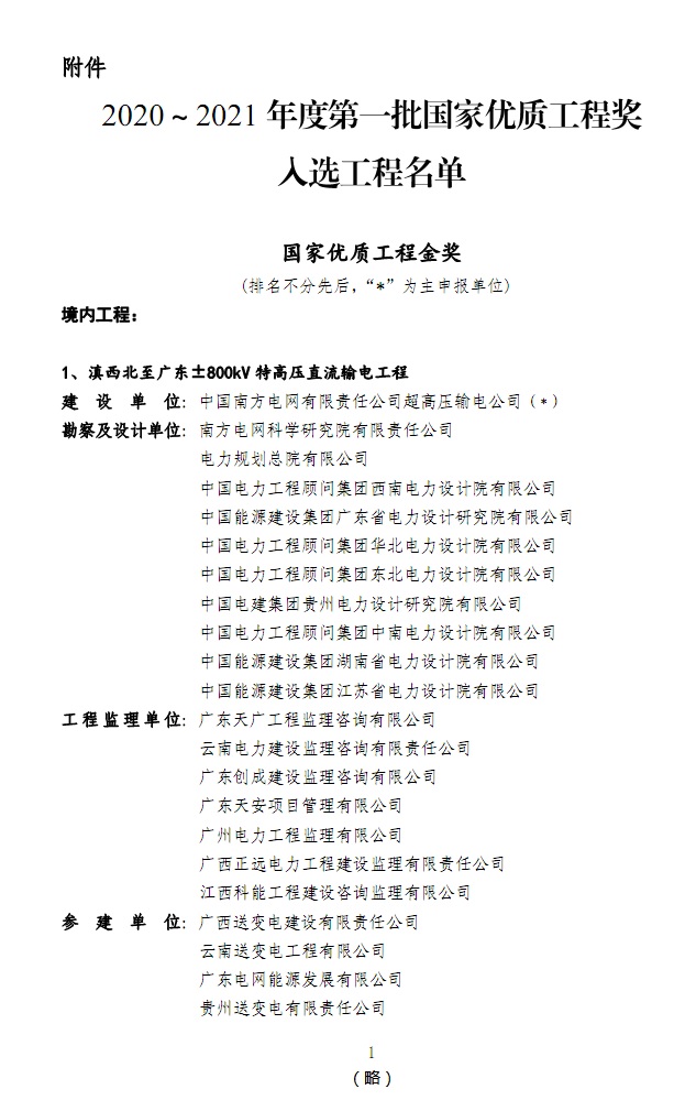 各关联协会,有关单位: 依据《国家优质工程奖评选办法》,2020~2021年度第一批国家优质工程奖评审工作已经结束。现将入选工程名单予以公布。